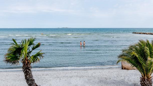 Hai letto bene! Palme sulla costa danese. Vicino alla vivace città portuale di Frederikshavn si trova 'Palmestranden', una spiaggia esotica e a misura di bambino con molte opportunità per le attività sportive. Fatti una partita a pallavolo o a bocce, poi riposati su uno dei lettini gratuiti.